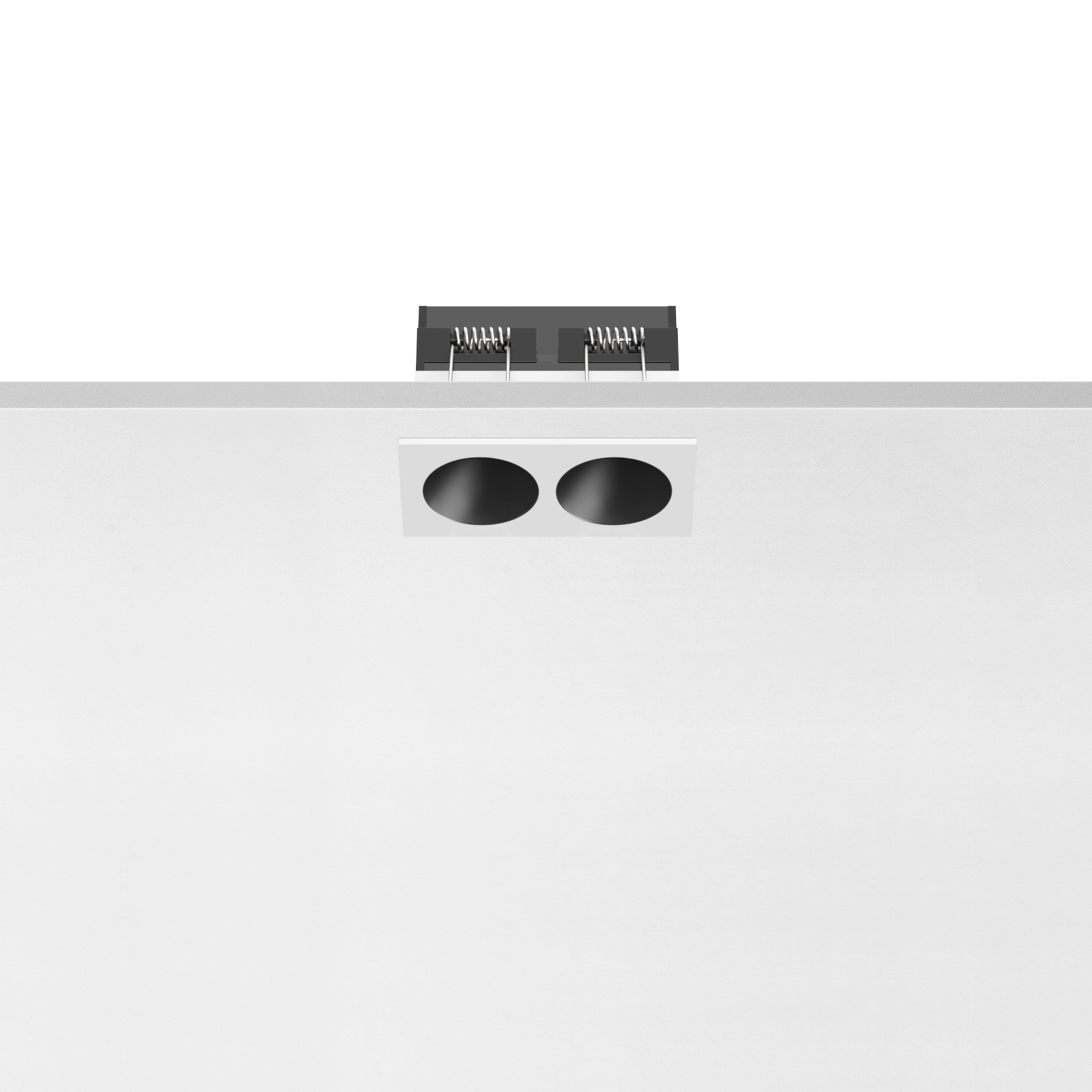 Recessed integrated luminaire with 2 LED lighting spots. Remote power supply included (220-240V).
